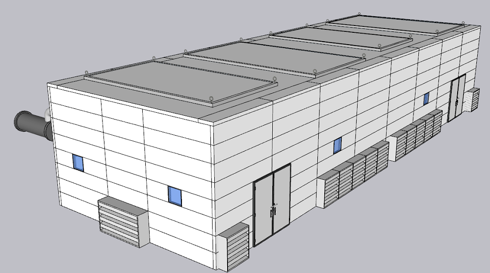 根據上海噪聲治理公司世創陽安現場實測數據、噪聲情況分析和設計依據及治理目標,結合經濟性、可靠性和實用性,設計此方案。采用隔聲罩的方案進行治理。由于設備噪聲較高,距離敏感區域較近,因此必須采用隔聲罩的方案。隔聲罩以鋼結構為框架,強排風措施,進風百葉消聲器、隔聲檢修門、可拆卸頂、觀察窗和吸隔聲模塊主材組成。隔聲罩為模塊式結構,后期拆卸后再安裝,以便于設備的大檢修。