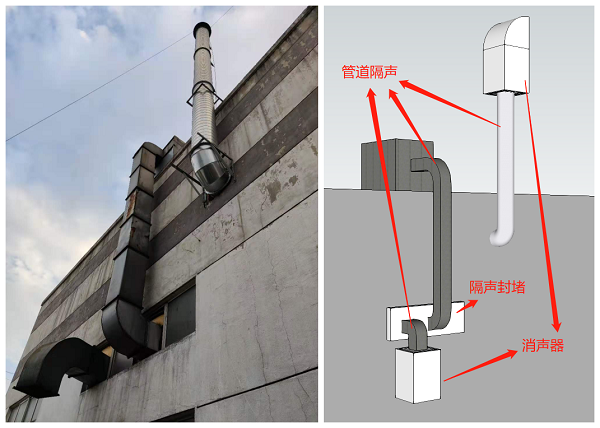 根據(jù)現(xiàn)場實(shí)測數(shù)據(jù)、噪聲情況分析和設(shè)計依據(jù)及治理目標(biāo),結(jié)合經(jīng)濟(jì)性、可靠性和實(shí)用性,設(shè)計此降噪方案: