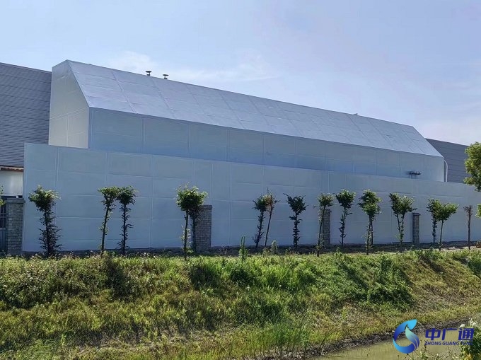 - 本項目位于,上海市嘉定區(qū)華亭鎮(zhèn)華業(yè)路666號,靠近廠界有8臺冷卻塔需要進(jìn)行噪聲治理,方案是在冷卻塔靠近墻的一側(cè)和西側(cè)進(jìn)行聲屏障包圍的方式來處理噪聲,可以有效降低冷卻塔運