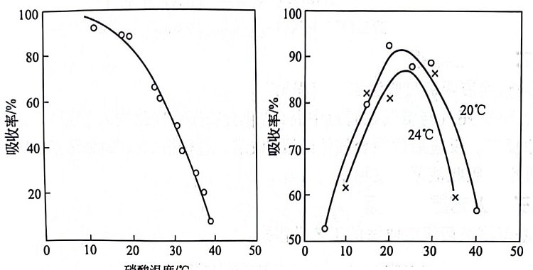 (2)吸收液濃度 濃度與NO2吸收率的關系見圖8-8。吸收液濃度一般以15%~30%為宜。
